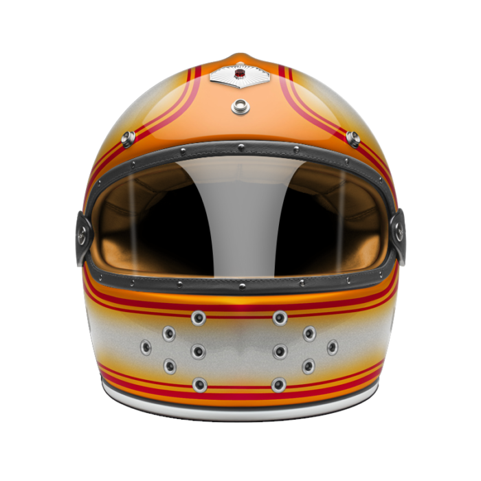 We also offer a dedicated range of external visors in clear, light smoke, dark smoke and orange, trimmed with leather and held in place by a rubber strap that follows the curve of the shell.