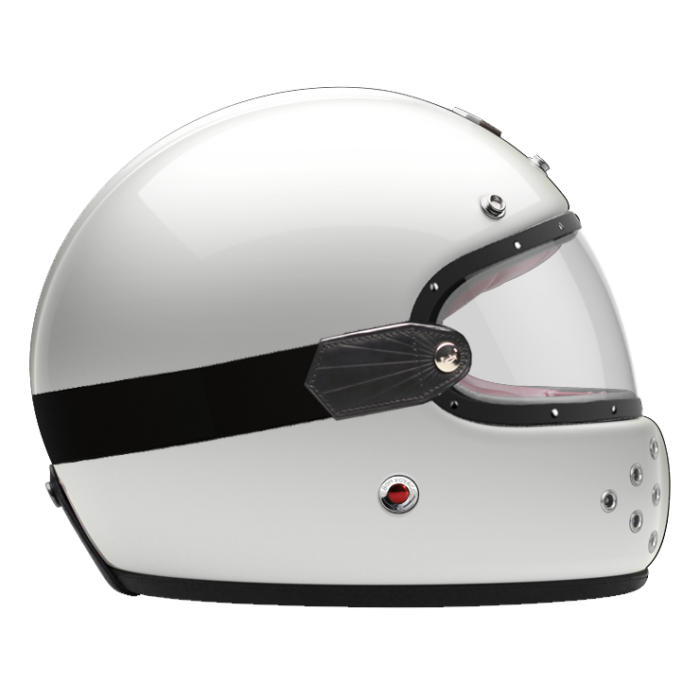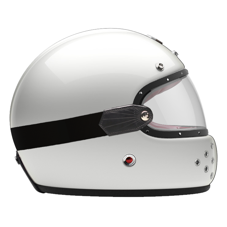 The Full face helmet light Visor lets you ride comfortably also on higher speeds. It turns the Full face helmet into a fully closed helmet. The visor is framed by leather and a chrome or alternatively a gunmetal finish. The elastic rubber strap with special anti-slide strips and attachment to the loop on the back of the helmet ensures safe, firm fit.