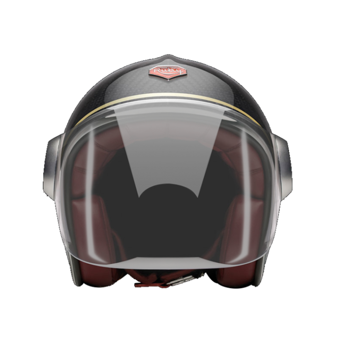The RUBY Jet helmet is made to order and finished by hand. It shares the same compact shell, clean lines and leather interior as our open face, and adds a full-length articulated visor for extra coverage.