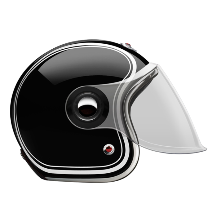 The large, integrated screen gives the helmet a subtle retro-futuristic character, echoing 1960s robots and science-fiction heroes, while remaining compact on the head. Each helmet combines a vintage-inspired silhouette with modern materials and current safety standards.